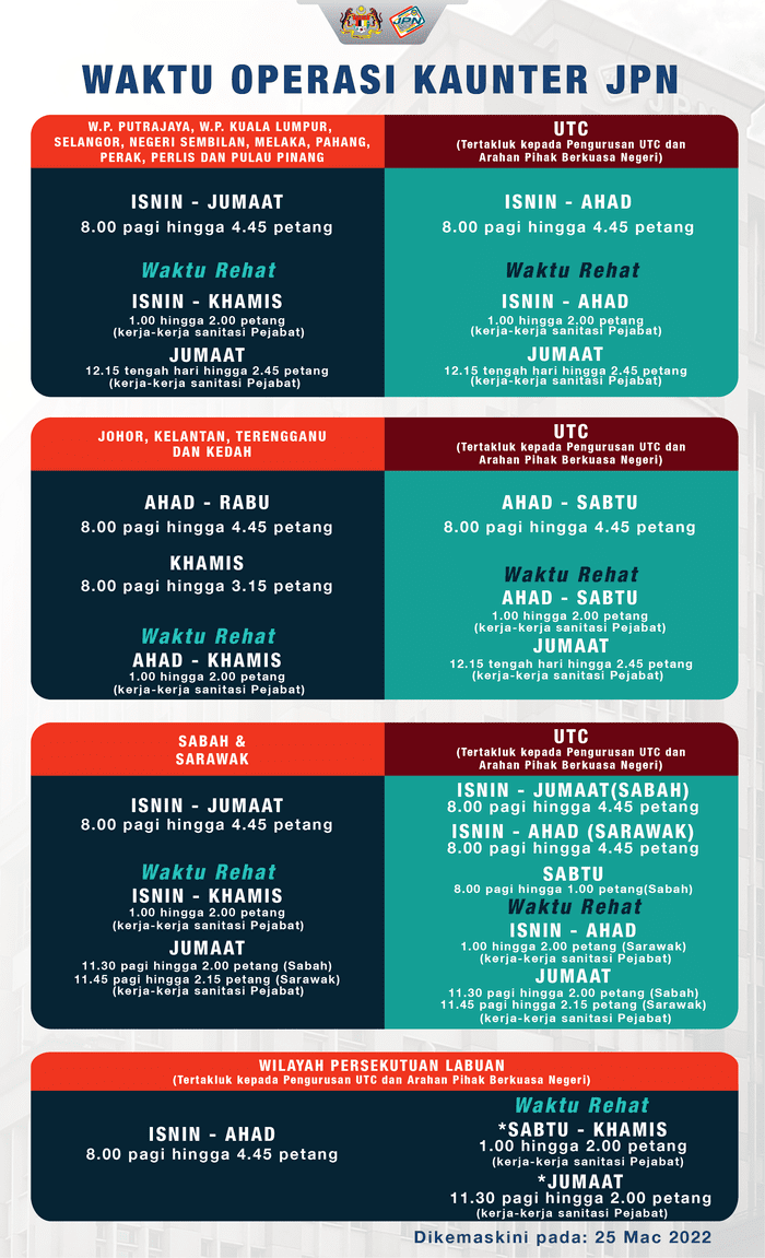 Berdasarkan Jabatan Pendaftaran Negeri (JPN), pengeluaran Mykid telah beroperasi semula di Ibu Pejabat dan JPN Negeri. Justeru pemohon boleh hadir ke mana-mana cawangan JPN termasuklah di UTC dengan membawa dokumen berikut: