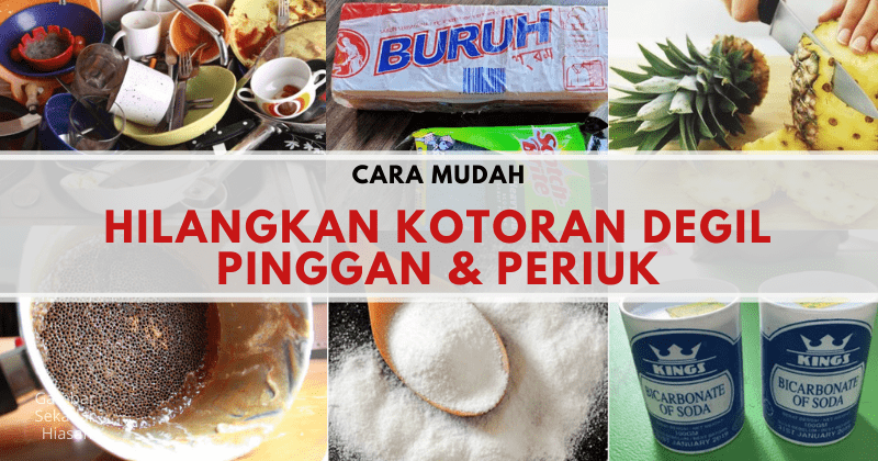 Ada pelbagai cara yang boleh digunakan untuk memudahkan kita basuh pinggan yang masih ada sisa-sisa minyak dan kotoran degil. Pernah rasa macam nak buang je pinggan yang susah nak hapuskan minyak dan segala sisa lemak yang masih juga melekat walaupun dah berapa banyak kali bilas. Bila tengok periuk dengan kuali pula ada bekas-bekas hitam lepas kita masak tu. Wah! Jadi sakit mata tengok sebab dah cuci banyak kali pun, macam tu juga! Nak kena buat apa ni?