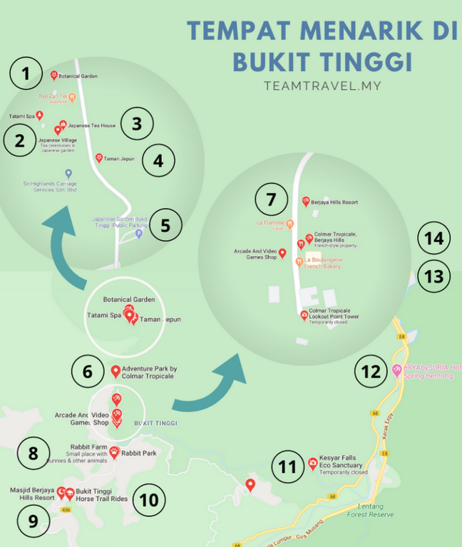 Kalau korang tahu Genting Highland di Pahang, korang wajib tahu Bukit Tinggi kerana lokasi tempat peranginan ini berdekatan dengan Genting Highland. Bukit Tinggi ini dikenali dengan tempatnya yang sejuk dan cuacanya yang nyaman. Tambahan senibina bangunan di sini juga menyerupai bangunan di benua Eropah sehinggakan resort di sini digelar ‘Le French styled Resort‘.