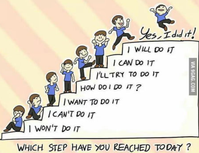 Mempunyai visi dan matlamat yang besar tidak salah. Tapi dalam mencapai azam baru korang, mulakan dengan langkah kecil terlebih dahulu. Jangan letak sasaran yang di luar kemampuan diri sendiri. Perkara ini boleh menjadikan korang hilang motivasi dan meninggalkan azam tersebut. Langkah-langkah kecil yang korang ambil inilah akan membantu korang untuk mencapai azam korang yang lebih besar.