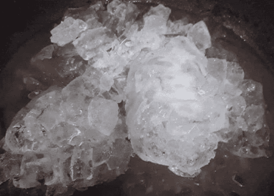 - Semasa air sedang menggelegak, masukkan sebongkah ais.