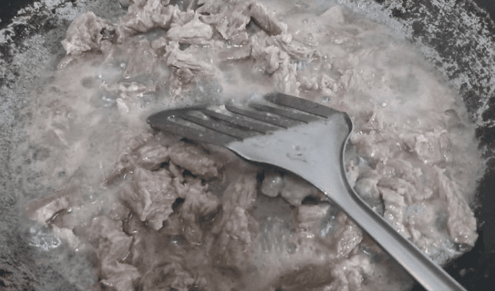 - Masukkan daging dan goreng sehingga air daging keluar sendiri.