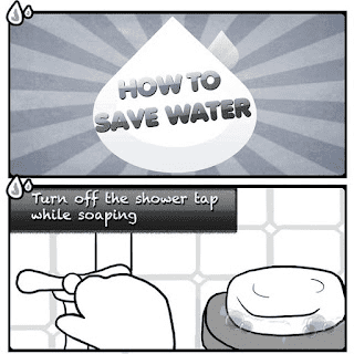 8. Tutup pancuran air atau shower sewaktu menyabun badan atau syampu rabut. Tutup juga paip air ketika gosok gigi. Jangan biarkan mengalir begitu sahaja. 5% Jimat.