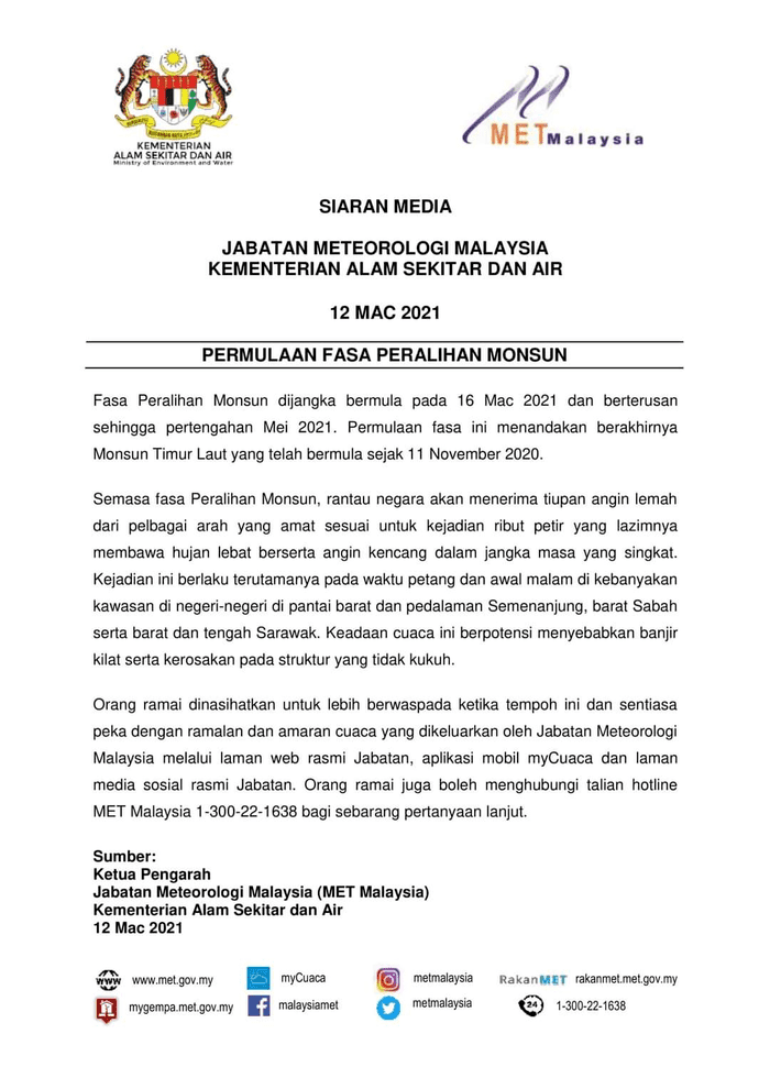 Info Terkini: Permulaan Fasa Peralihan Monsun