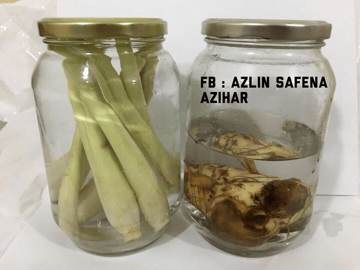 - Kemudian rendamkan lengkuas / serai dalamnya