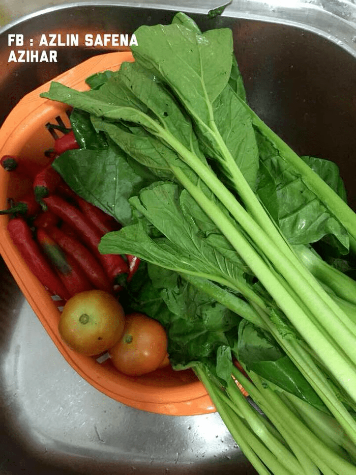 - Rendamkan semua sayur yang dibeli dalam air selama 5 hingga 10 minit. Kalau sayur kangkung atau bayar, korang boleh rendam tapi asingkan dengan sayur lain. Ini kerana bayam dan kangkung berpasir, tapi tak perlu pun potong akar dia dulu, nanti potong masa nak guna je. Tapi kalau dah basuh betul-betul bayam tu dan yakin dah tak berpasir boleh je rendam sekali.