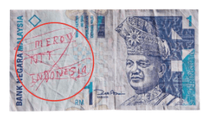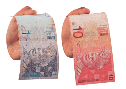 - Tiada Nilai: Jika duit kertas cacat mempunyai saiz kurang daripada ½ saiz asal, ia tak boleh ditebus dengan duit baru.