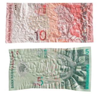 - Lembik: Duit kertas yang dilipat berlebihan hingga mengubah struktur dan teksturnya.