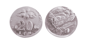 - Kotor: Permukaan duit syiling yang berubah disebabkan haus, lusuh, ataupun kotor.