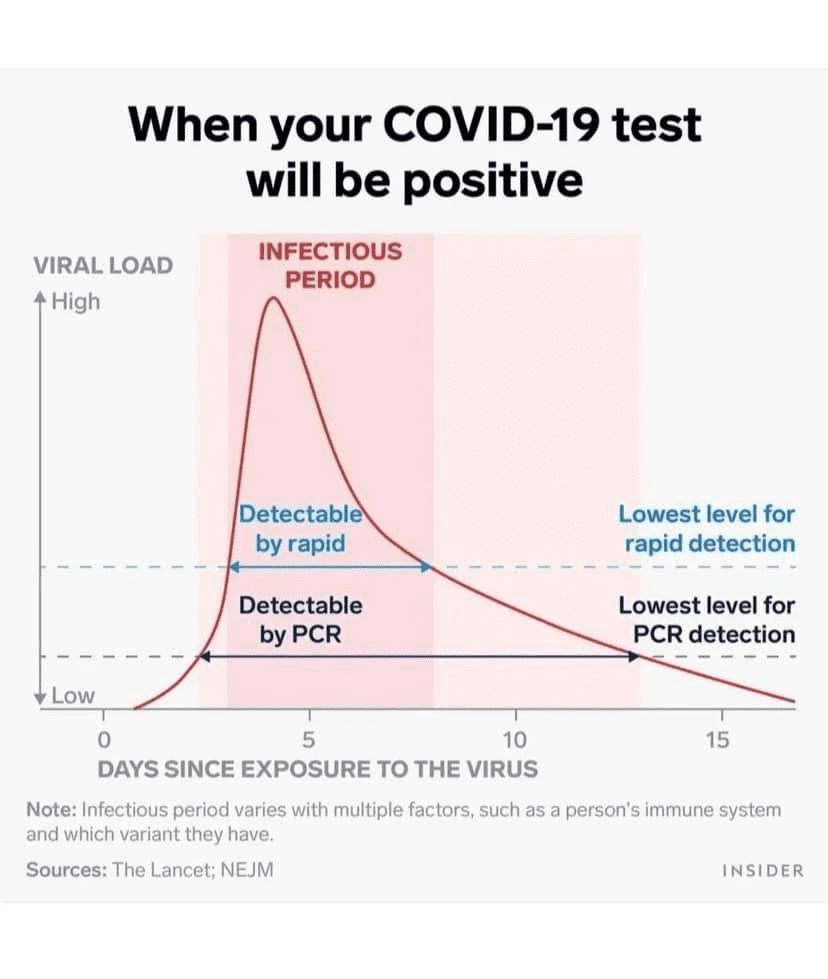 Namun, selalunya kita mana nak tau siapa kita jumpa tu positif C-19 ke tak kan. Camna nak kira hari ke 3-5 pulak? Sebenarnya sewaktu VIRAL LOAD tu tinggi dalam badan, ia juga dipanggil sebagai ‘INFECTIOUS PERIOD’ dan kita akan mula BERGEJALA semasa tu. Sebab tu kita digalakkan membuat ujian kendiri semasa bergejala. Semasa Infectious Period ini juga kadar jangkitan adalah tinggi.